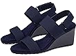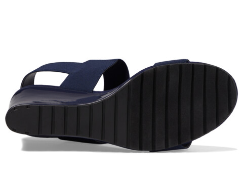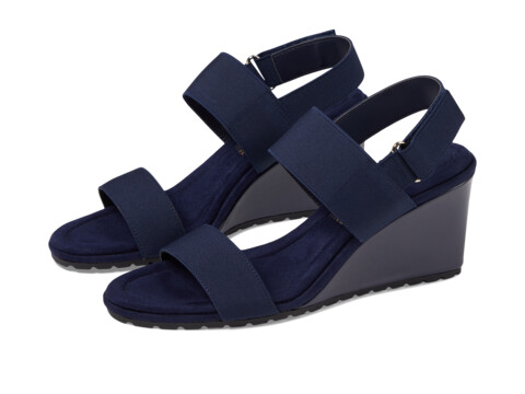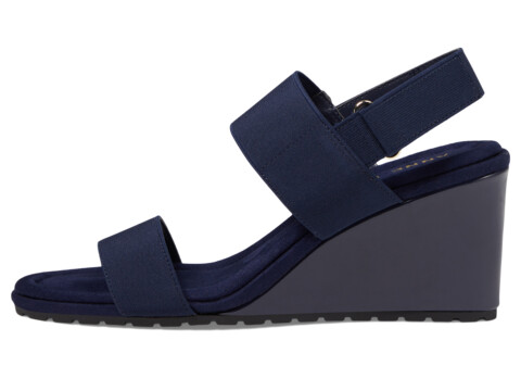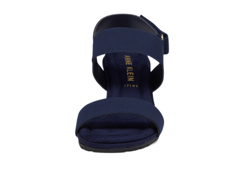 Anne Klein® Silvy sandal. It features fabric upper in two-strap design and slingback with buckle closure. A synthetic lining and insole make it durable and comfortable. A wedge heel provides contemporary look to showcase modern silhouette.
