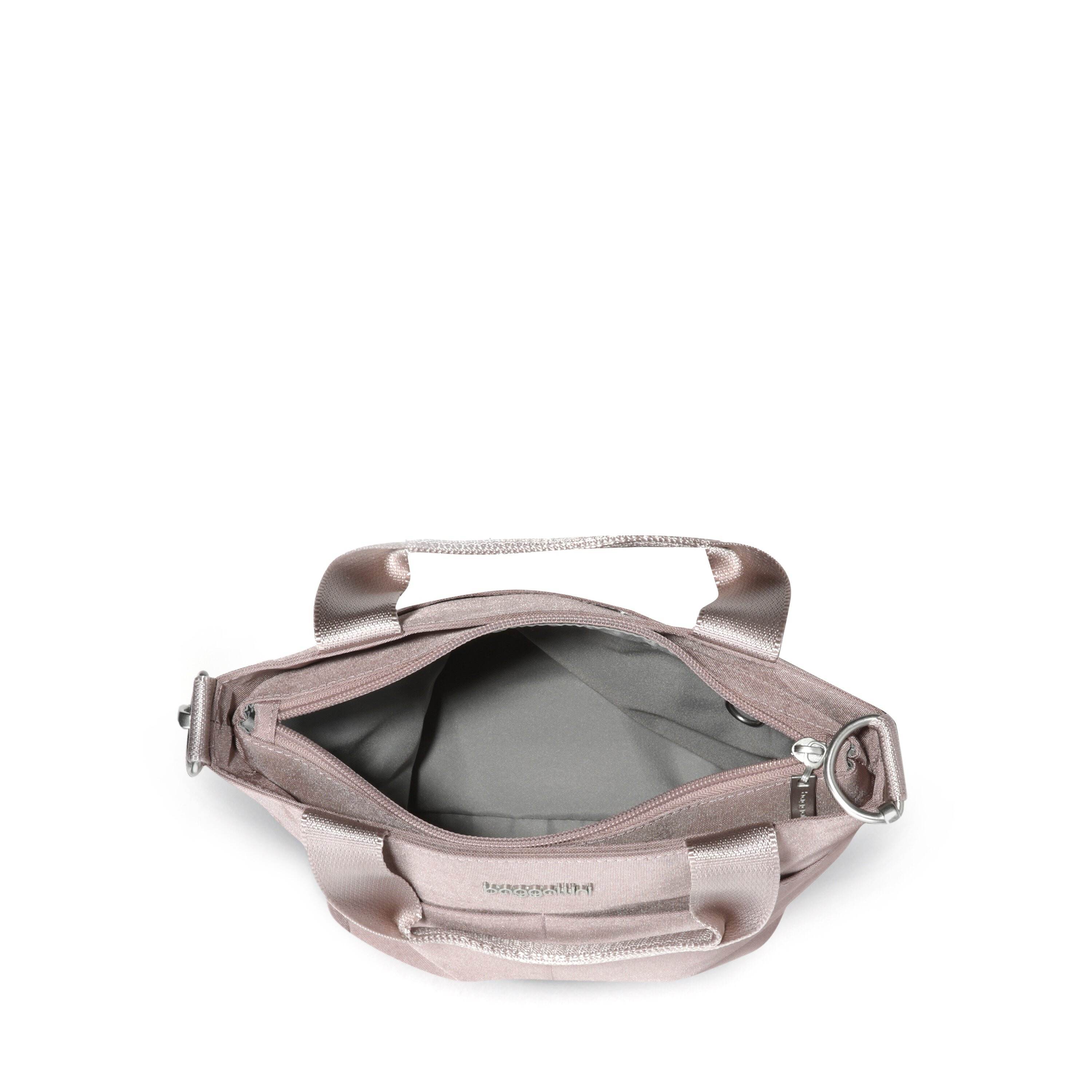Going for a casual outing or an unplanned trip? Save the day with the Baggallini® Mini Carryall Tote that enables you to pack and organize your stuff easily and conveniently and keep them handy.