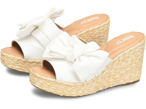 Featuring Opanka hand-crafted construction that offers durability, the Born® Adalia sandals are an ideal choice for different occasions. The leather upper of these slides is styled with an asymmetric bow detail that gives them a stylish look. These platform slides are crafted with leather-covered footbed with extra foam to offer superior cushioning. The suede lining provides added comfort. These espadrille-style sandals make a stylish addition to your footwear collection.