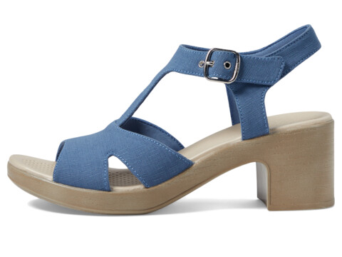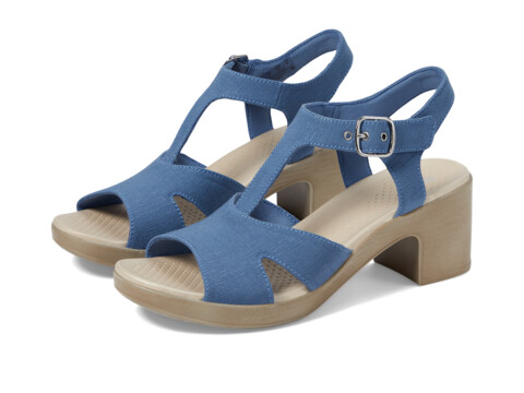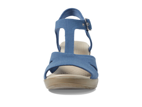 Add a touch of serene sophistication to your ensembles wearing the Bzees® Everly Strappy Sandals. The block-heeled footwear features stretch denim fabric upper with partially recycled lining and open round toe silhouette.