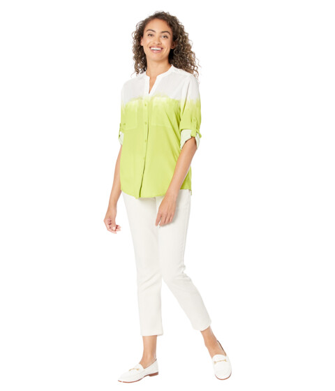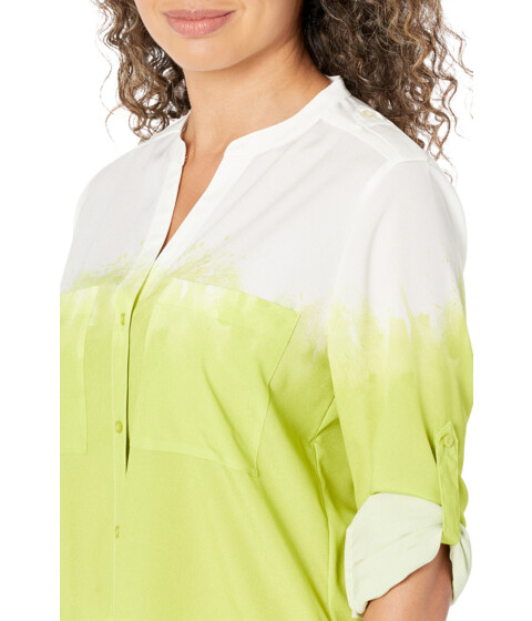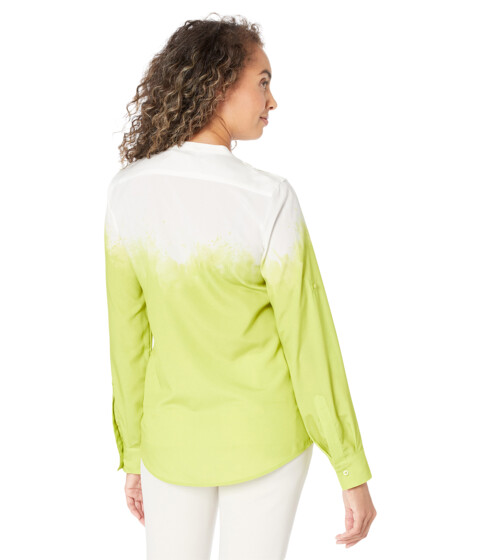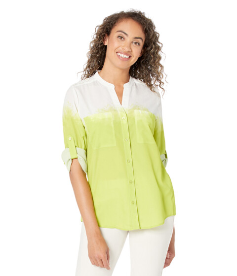 • Calvin Klein® Printed Crew Neck Roll Sleeve blouse.
