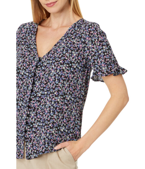Stand out in style wearing the CeCeâ„¢ Floral Ruffled Sleeve Button-Up Blouse. This classic fit top features V-neckline, buttoned front closure, allover eye-catching print, short sleeves, and straight hem.