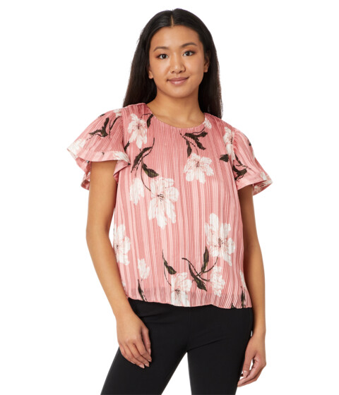 • Elevate your charm with this floral print CeCeâ„¢ Flowy Pleated Blouse, a darling addition to your wardrobe that exudes both elegance and cuteness. This pullover lurex stripe top fetures crew neckline and flowy short sleeves.