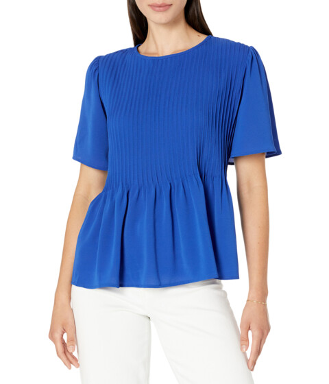 The CeCeâ„¢ Pin Tuck Blouse with Flutter Sleeve is designed for a casual yet chic statment look. It features a crew neckline, flutter sleevs, and a front body lined construction. The center-back keyhole with one-button closure allows easy on and off.