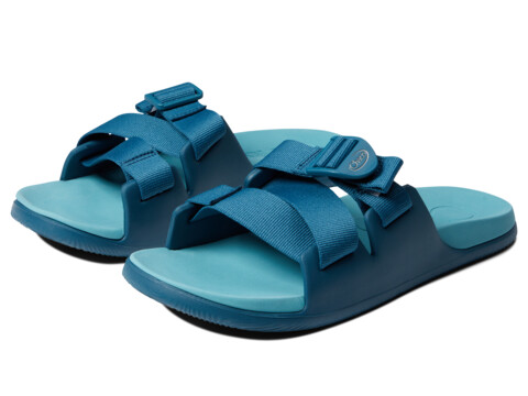• The Chaco® Chillos Slide has a vegan-friendly construction and boasts the iconic Z/Straps with cinch buckle for a strappy sandal design.