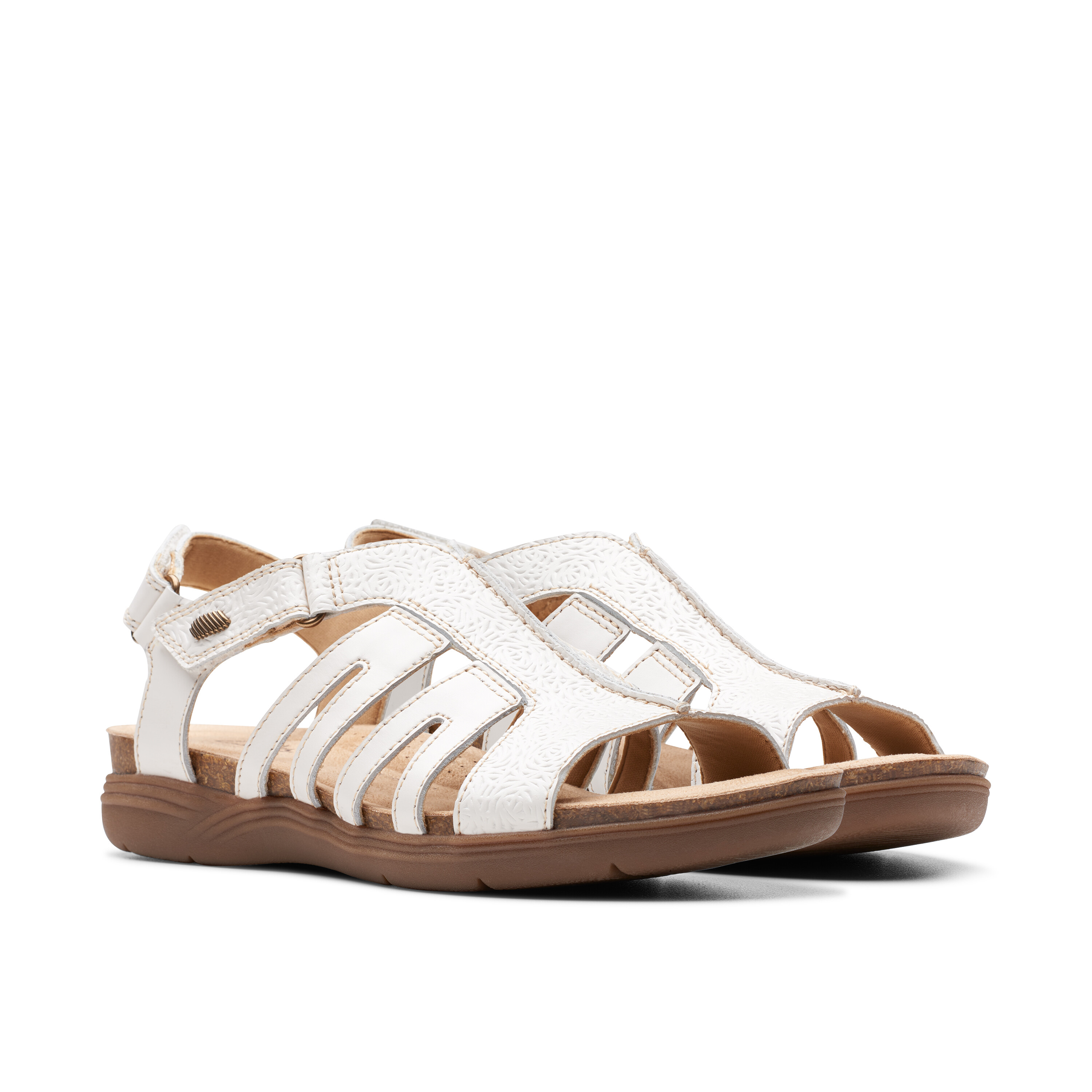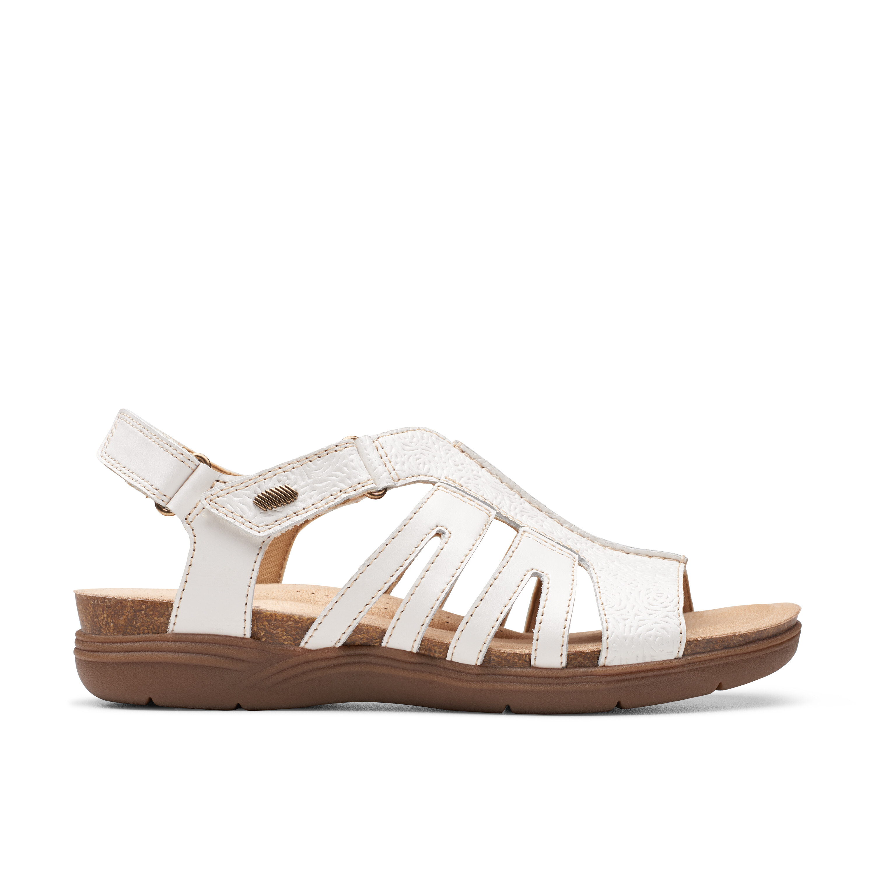 Make outdoor adventures completely filled with adventure wearing the Clarksâ„¢ April Belle Flat Sandals. The slip-on footwear features leather upper construction with hook-and-loop ankle strap closure.