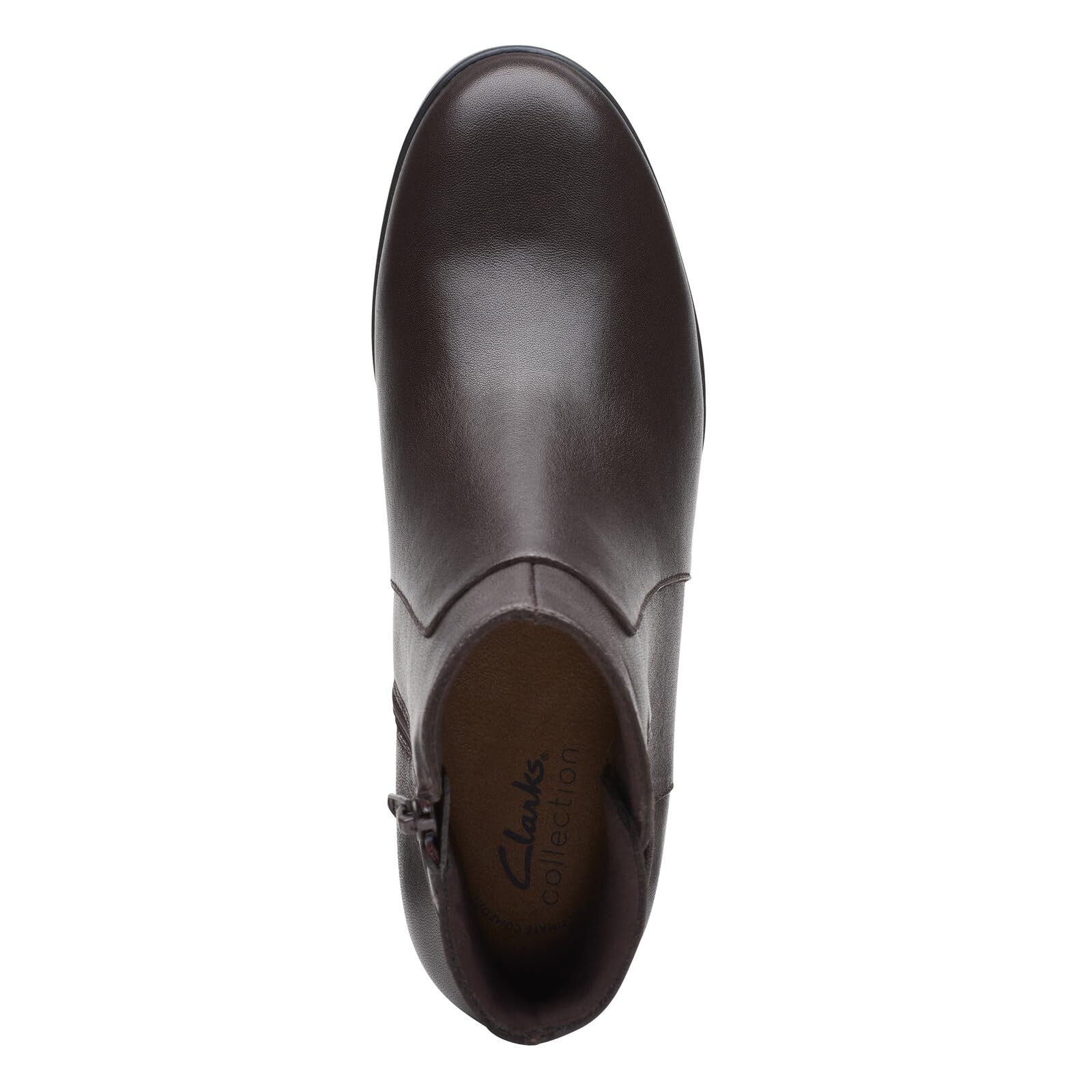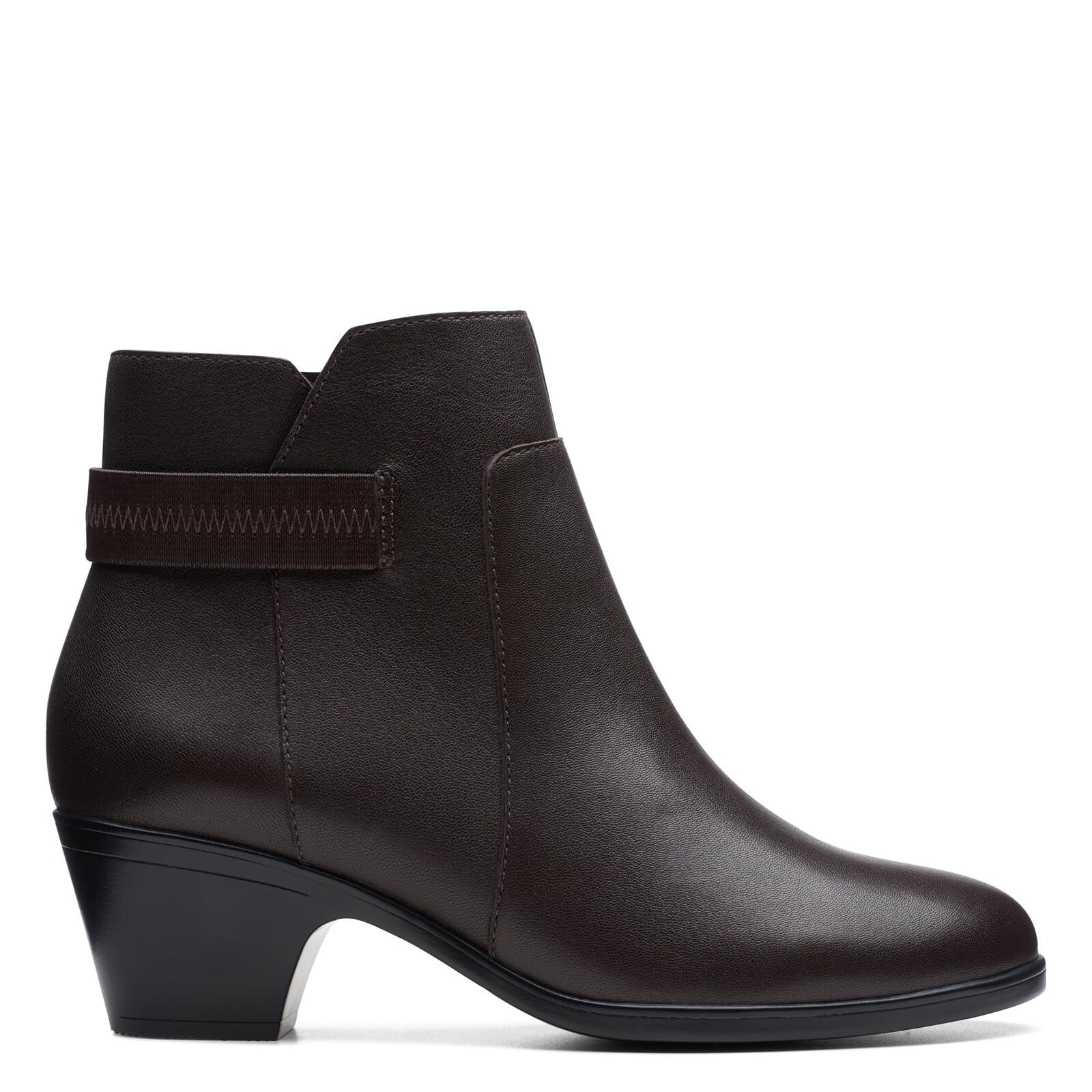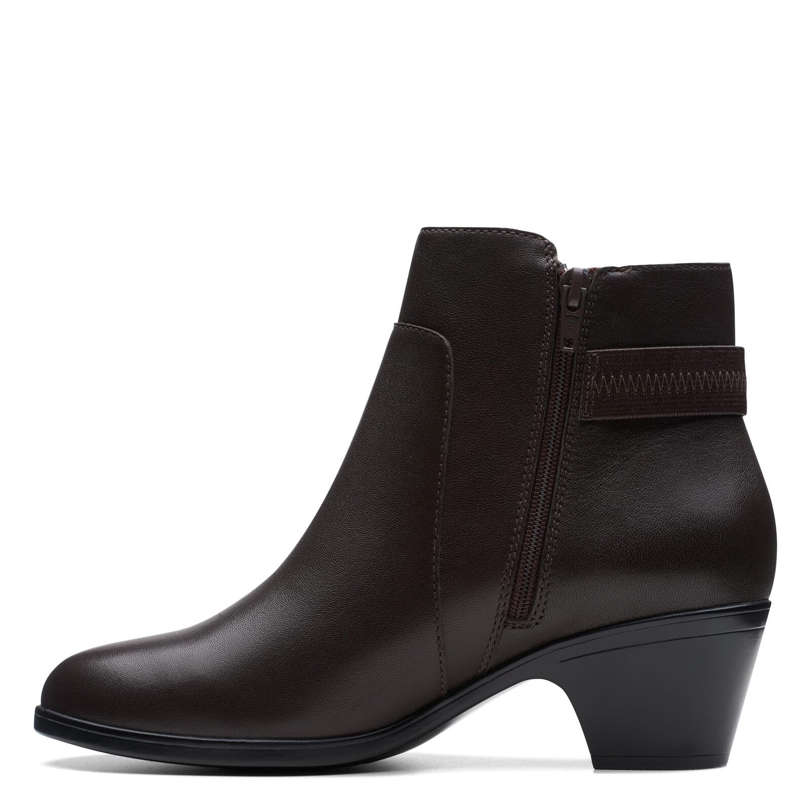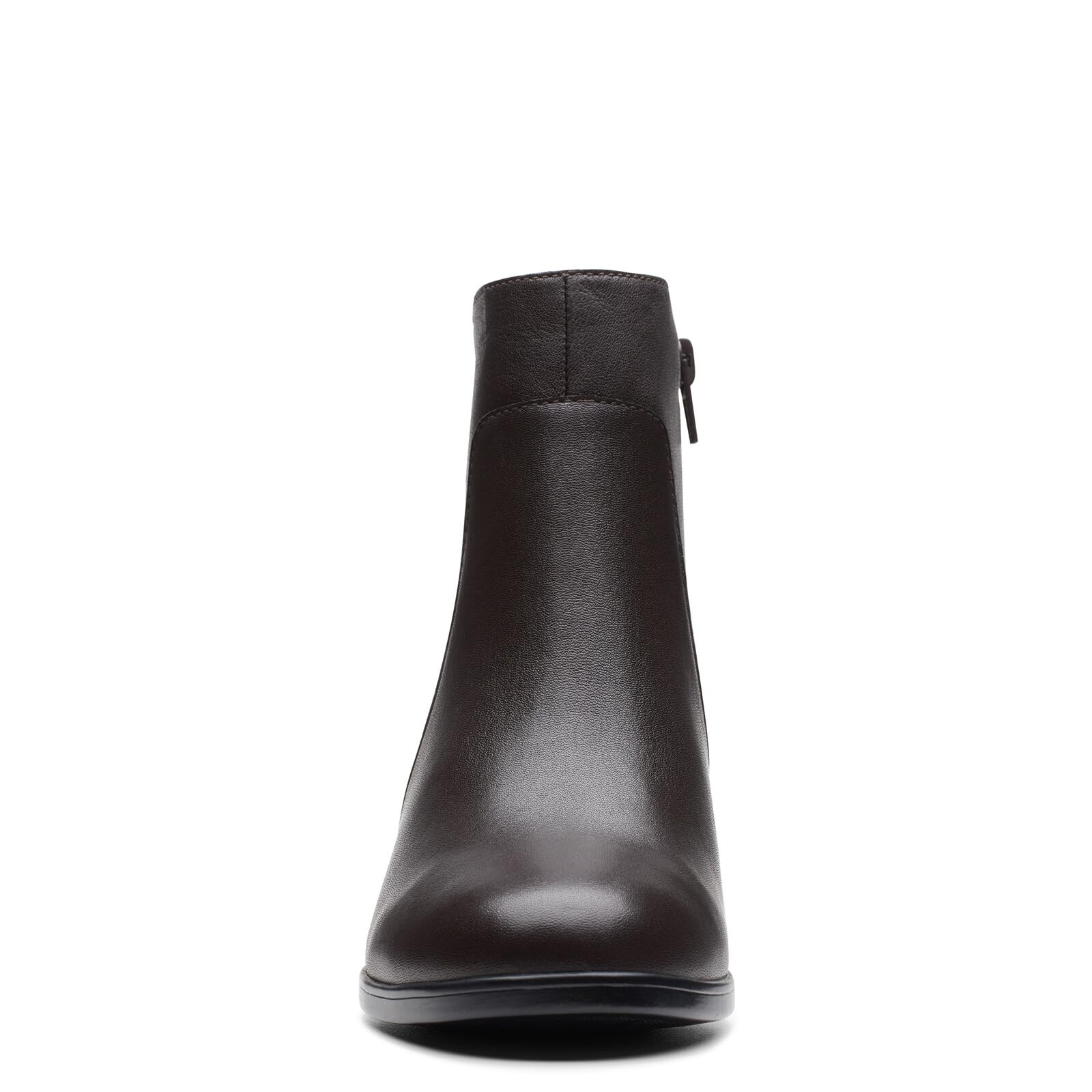 Give your feet the love they deserve! Wear the Clarksâ„¢ mily 2 Holly Boots and look gorgeous. This pair comes with a premium leather upper and a comfort PU foam footbed. The sculpted heel with a grippy outsole comes with a zip-fastening which offers easy wear. These boots have a closed toe design. The low-top construction adds to the aesthetic.