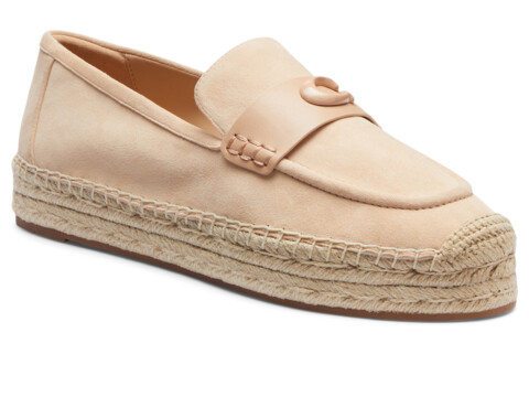 Lend a designer touch to your day-to-day style while enjoying a pleasant walk throughout your day wearing the COACH® Camilla Suede Espadrille Flats. Topped with a suede upper with an iconic logo-accented strap, these slip-on shoes are integrated with a breathable man-made lining and a lightly padded insole.