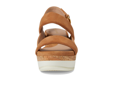 Style up your party dresses and chic outfits wearing the Cole Haan® Aislin Wedge Sandals. The leather upper of these sandals comes with a two-strap design for added style and support. These wedge sandals are crafted with a fully molded EVA footbed with arch support and heel cookie, making them comfortable for all-day wear. The textile lining cushions your steps while the slingback strap with a double-bar branded buckle offers added support. Make your fashion statement wearing these leather sandals.