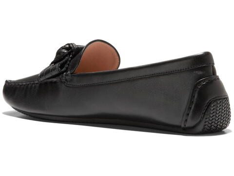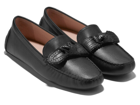 Embrace lasting comfort while exuding effortless style wearing Cole Haan® Bellport Bow Driver Loafers that feature a moc stitch driver silhouette with perforated and scalloped bow detail. The loafers are crafted with a leather upper, textile lining, textile insole with leather lined sock, and die cut sock with foam for added comfort.