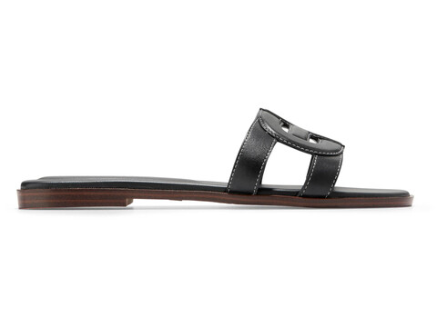 Experience ultimate comfort showcasing fashion with every step in these slip-on style Cole Haan® Chrisee Sandals with smooth salpa welt and cushioned interlocking Iconic CH logo strap detail. These flats feature a slightly square-toe silhouette, lightly padded textile upper and lining, and rubber insole to delight you with comfort while providing superior styling. Boasts patented FlowerFoam™ rubber outsole for flexibility, traction, and comfort.