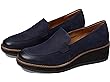 Let your steps move unstoppable in new comfort by wearing Comfortiva® Farland loafers. The rounded-toe with slip-on style makes it easy to wear. The loafers feature leather upper, microfiber lining, and insole. A wedge platform heel with lining all-around makes it eye-catchy.
