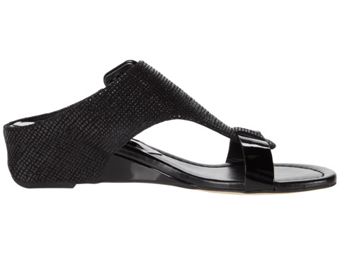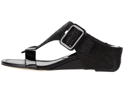 • The Donald Pliner® Ofelia sandal makes a chic statement with a T-strap silhouette, open toe, oversized buckle detail at the side, and wedge heel.