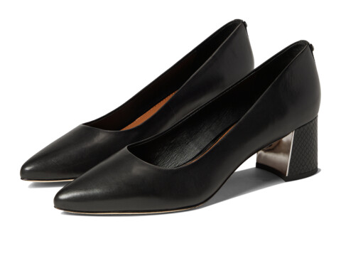 Pointed toe silhouette with block heel.