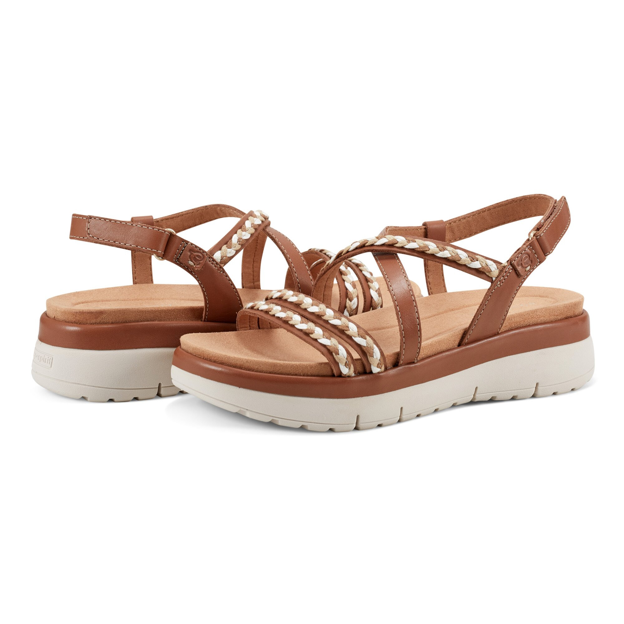 Embark your glossy look donning the Easy Spirit® Ivani. These flat sandals feature open round toe design, cushioned EVA footbed, leather and textile upper with braided detailing on the strap.