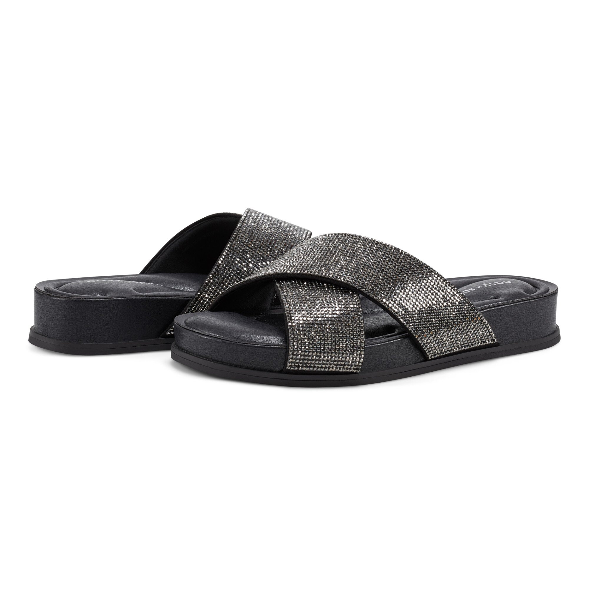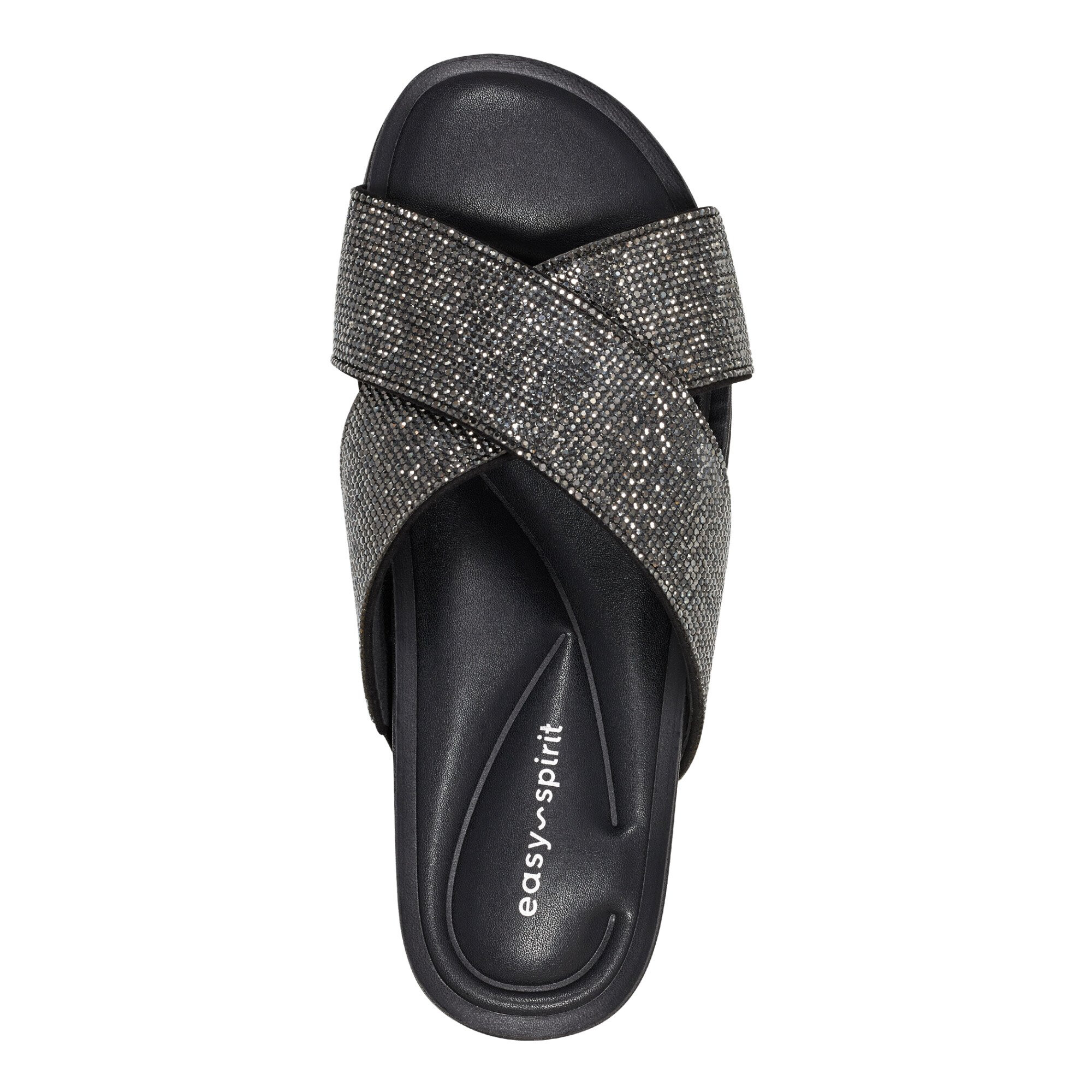 Burnish your elegant look donning the Easy Spirit® Judy. This open round toe design sandal features superior arch support and flexible synthetic and rubber outsole, stone embossed on the straps for a glossy touch, and slip-on construction.