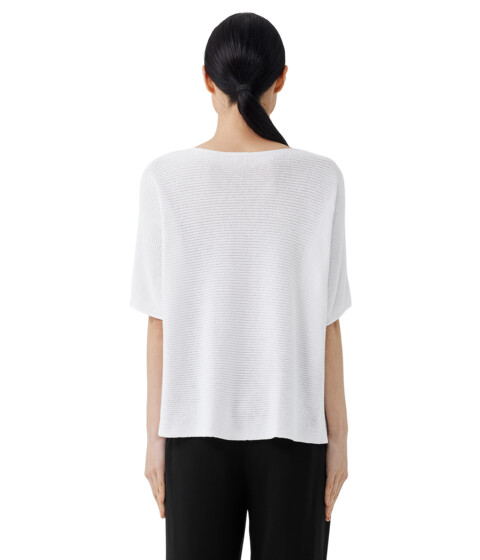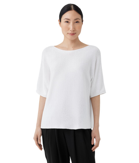 Add a touch of texture and visual interest to your outfit with this ultra-soft relaxed fit Eileen Fisher® Bateau Neck Elbow Sleeve Pullover T-shirt.