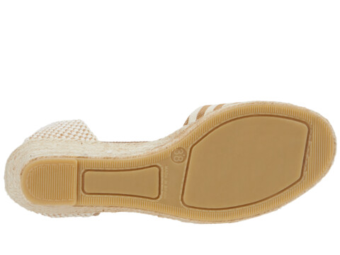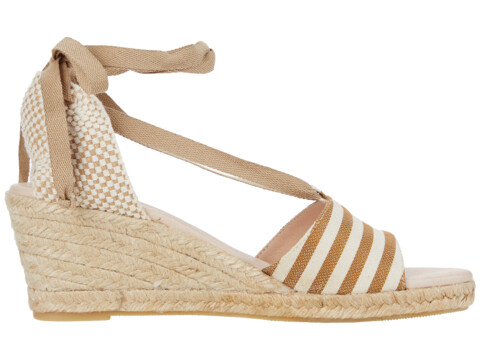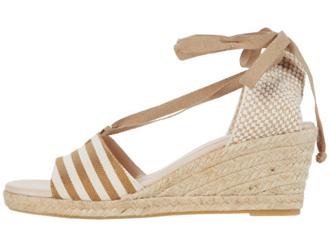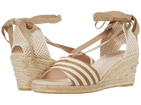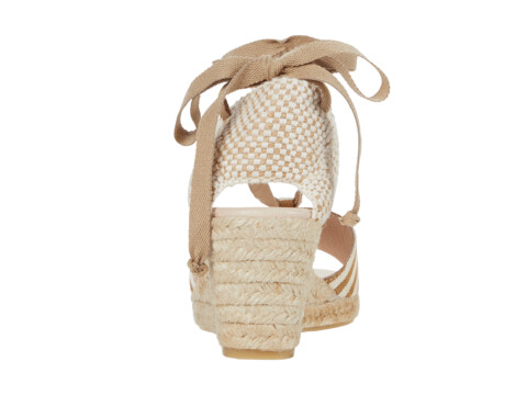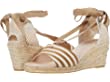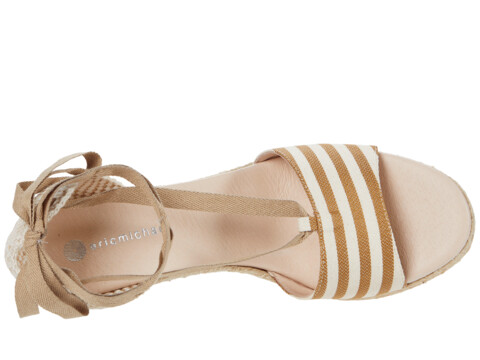 • Make sure you're vacation-ready with the Eric Michael® Sara espadrille sandal. The wedge boasts a striped canvas upper fixed with a lace accent that goes over the instep and ties at the back heel.
