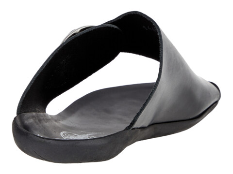 An monochrome asymmetrical leather sandal with a toe loop and adjustable buckle strap closure for the perfect fit.