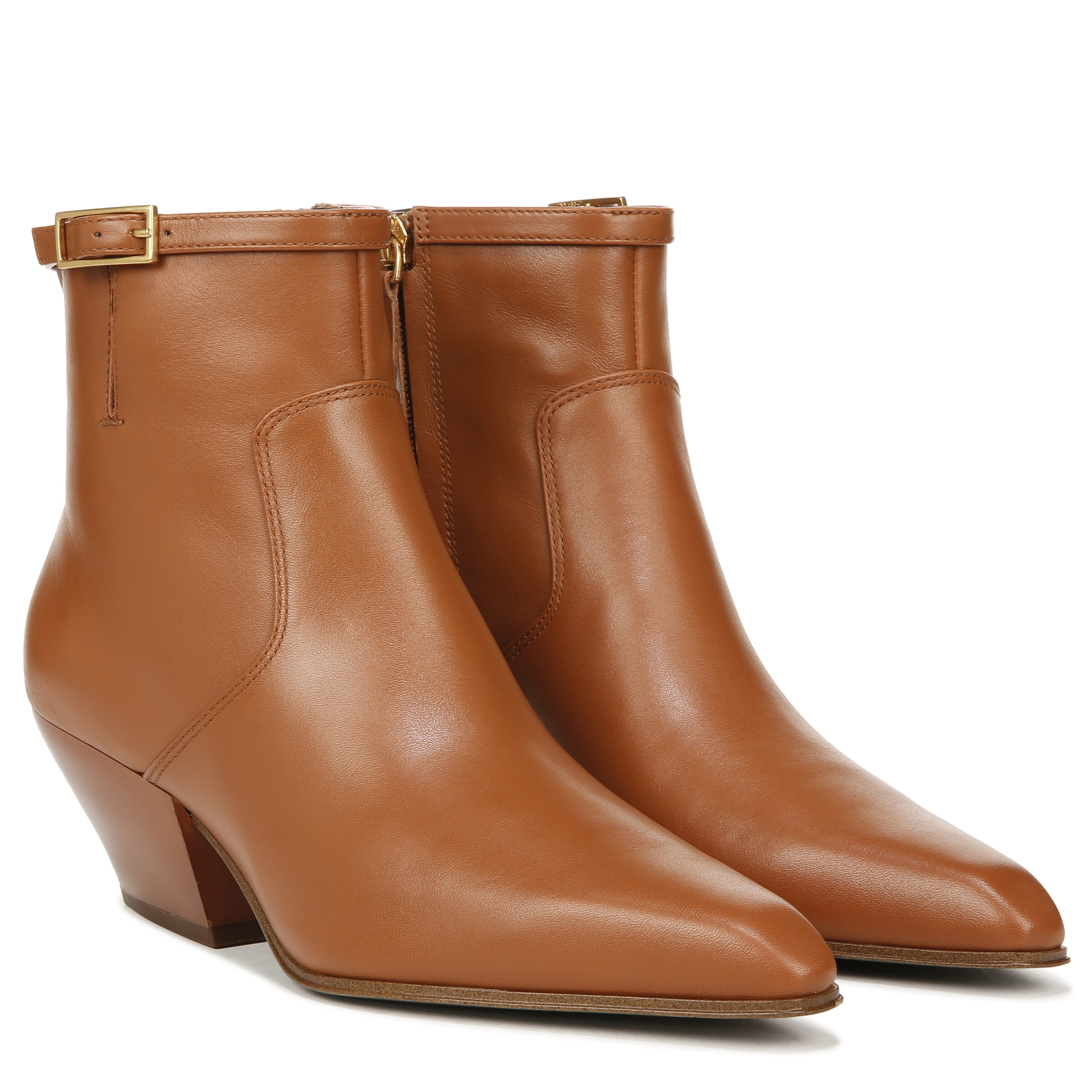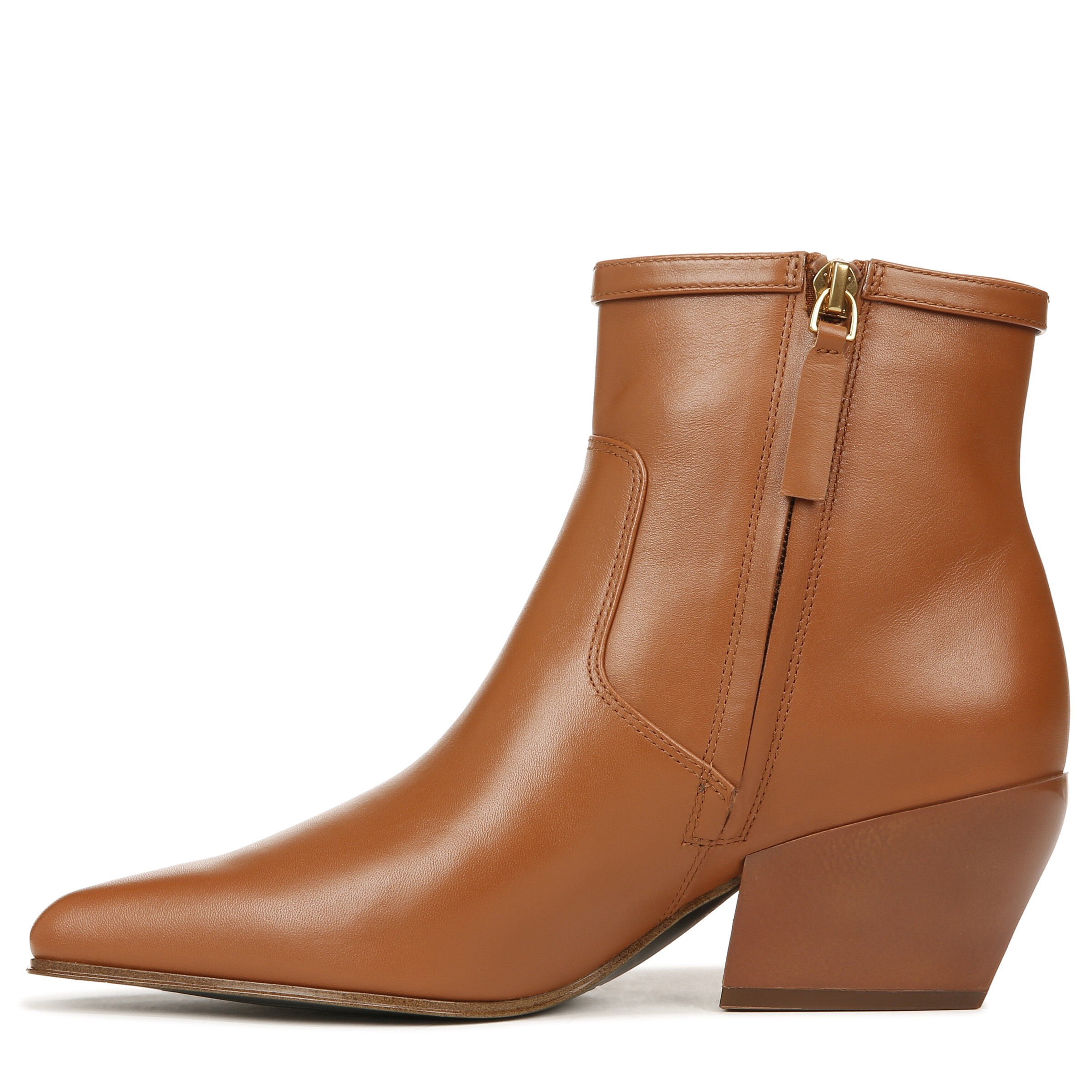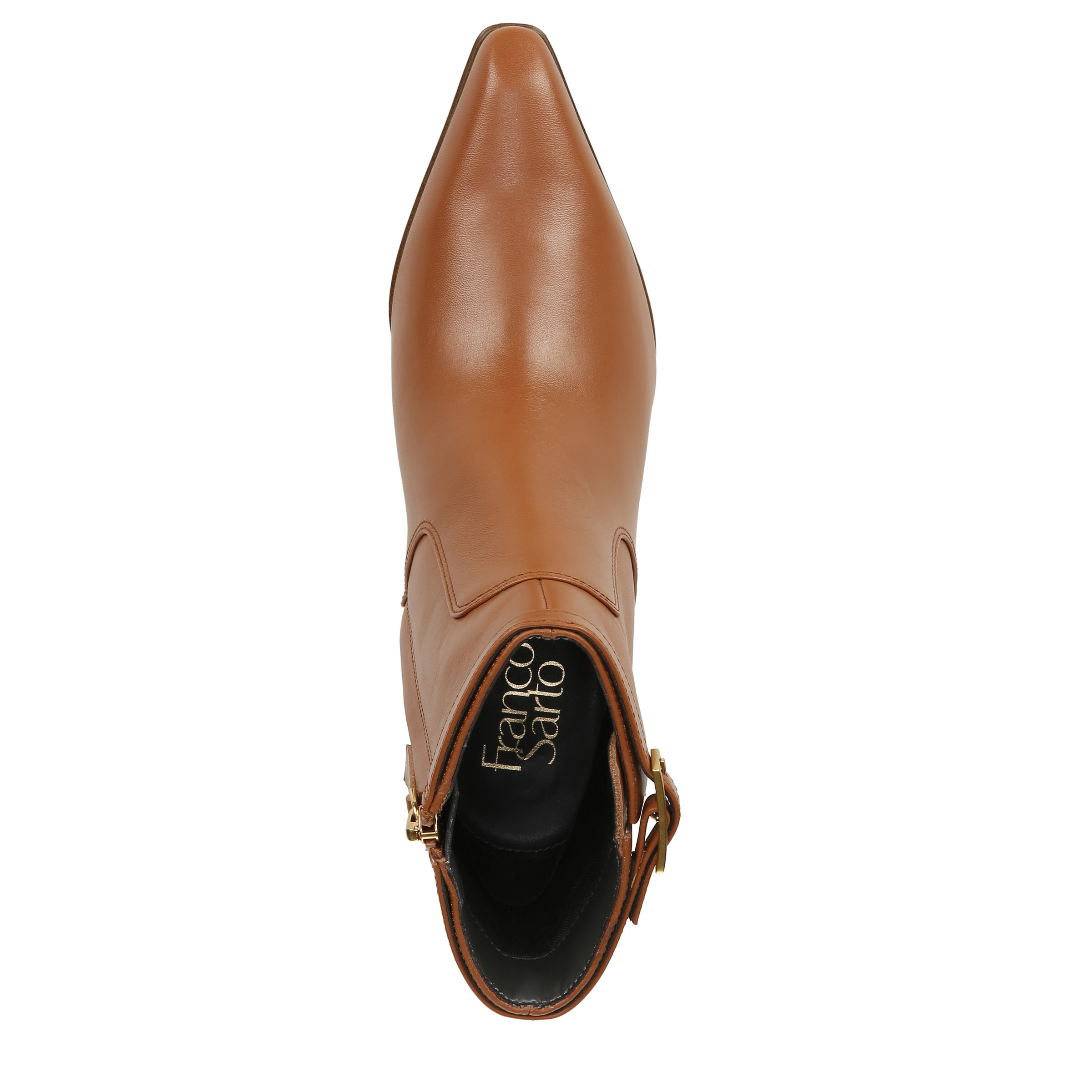 Exude a sleek and sophisticated style as you step outdoors wearing Franco Sarto® Amber Booties with pointed toe and zipper closure for easy on/off. The ankle-high boots come with a responsibly sourced leather upper, synthetic lining, and cushion memory foam insole.