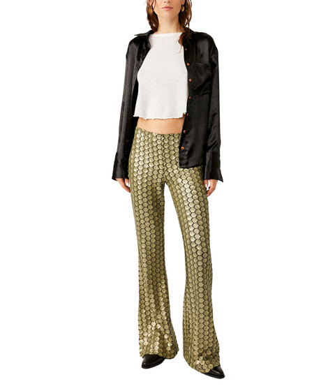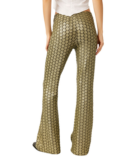 Party away your weekends in the subtle design of the classy Free Peopleâ„¢ Wilder Days Sequin Flare pants featuring an allover sequin embellishments mesh overlay in the pattern of scales. The pull-on style features an elasticized waistband featuring a true flare silhouette.