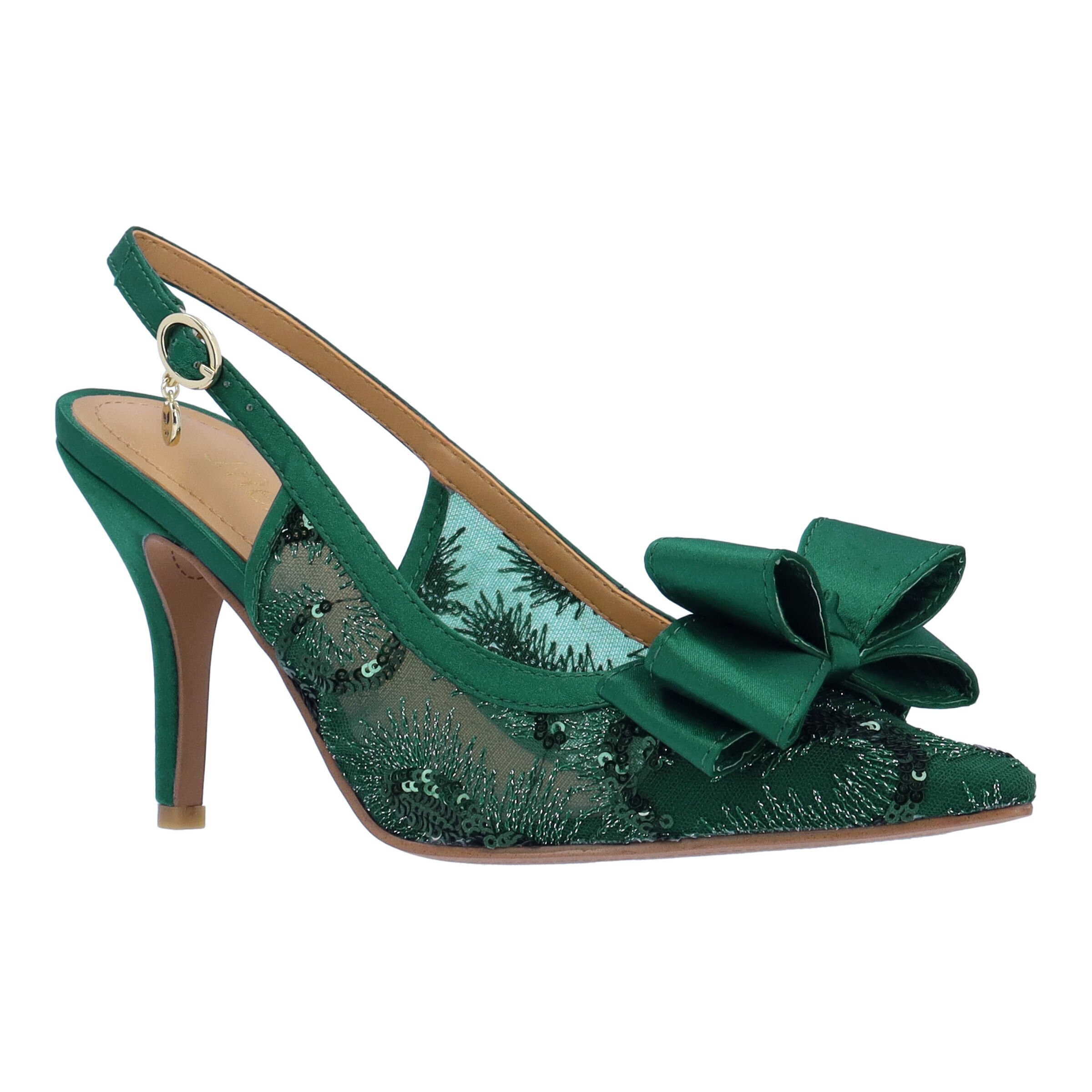 Mesh and satin upper with sequin embellishments.