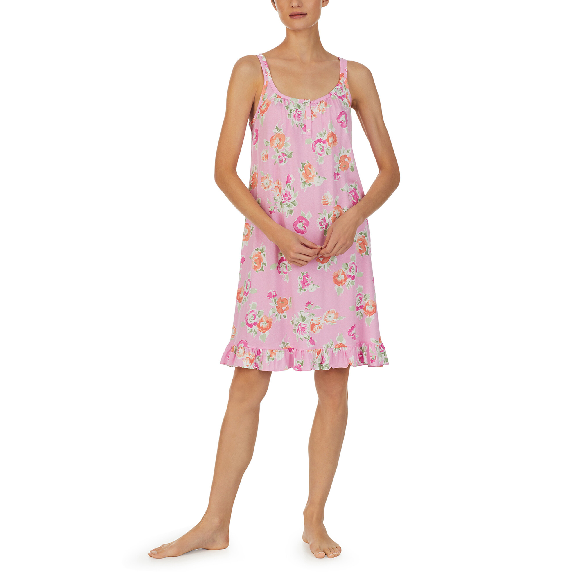Get the most peaceful sleep wearing the super-comfy LAUREN Ralph Lauren® Double Strap Button Neck Gown.