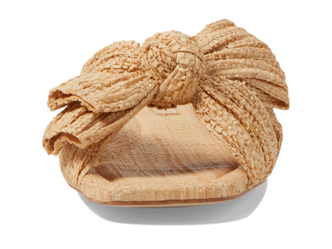 Slip into style wearing the printed fabric design of the Loeffler Randall® Daphne sandal with leather footbed, stacked heel and bow accent along the foot.