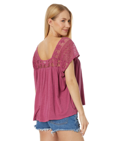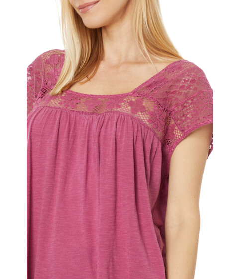 Let your beach-loving soul accompany the Lucky Brand® Square Neck Lace Beach Tee with a sheer mesh lace-trimmed pattern on the shoulders and sleeves.
