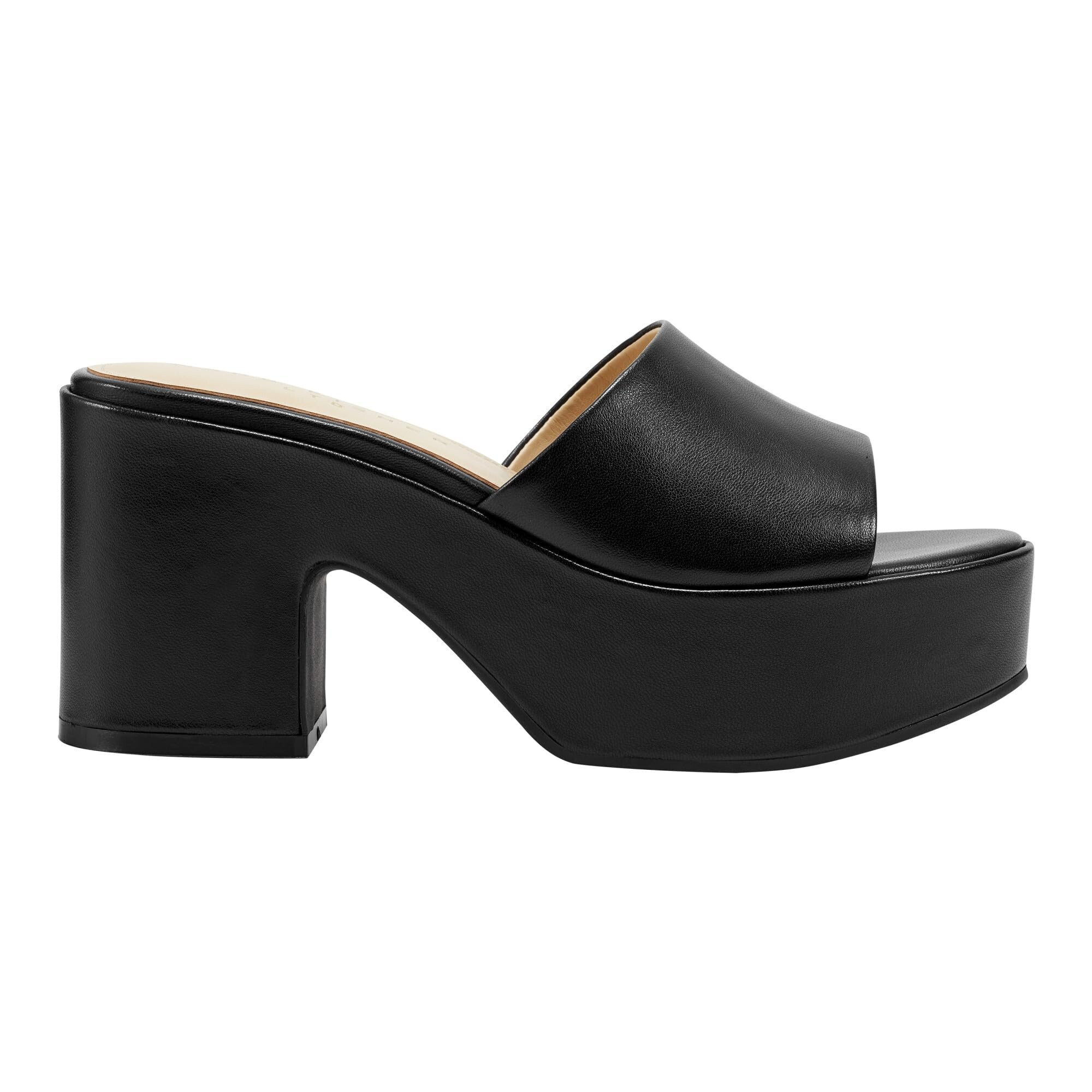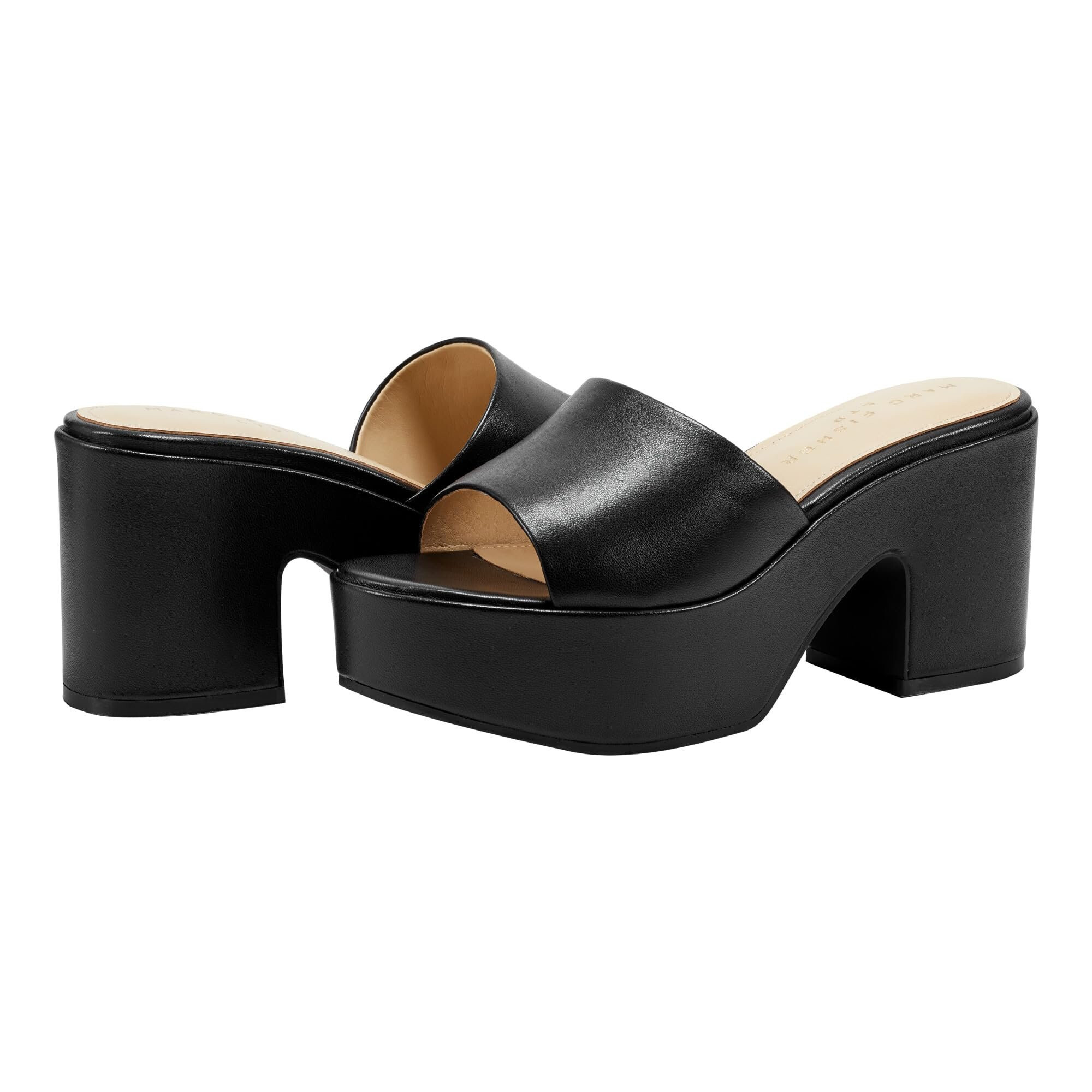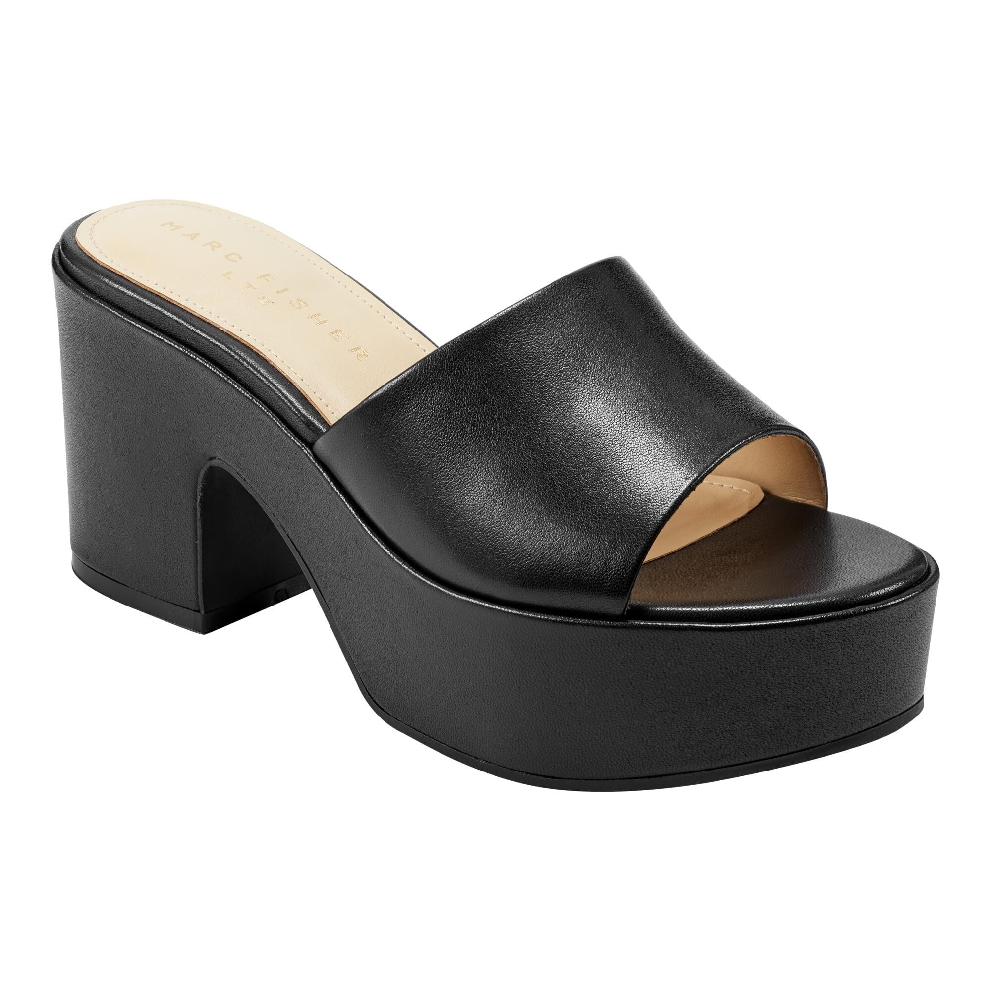 • Sow seeds of timeless style wearing the Marc Fisher LTDâ„¢ Forina Sandals. The slip-on footwear features leather upper construction with chunky block heels and front platform for maximum support.
