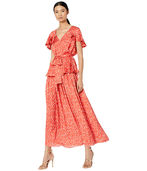 Flutter sleeves boast layered ruffled details.