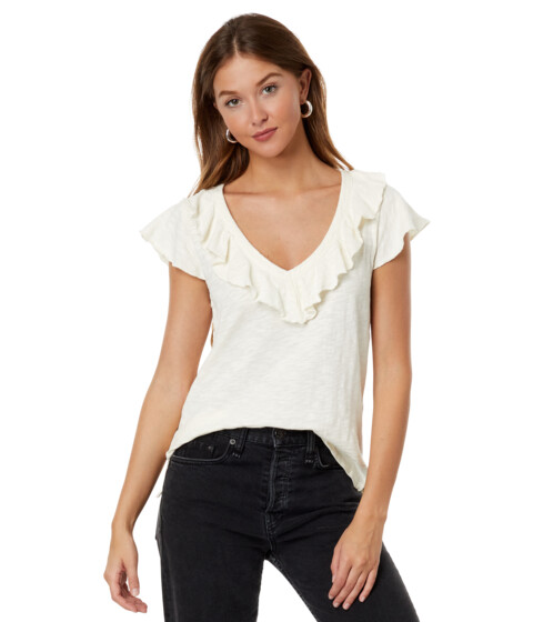 Add sophisticated elegance to your everyday looks wearing the comfy Mod-o-docâ„¢ Slub Jersey Short Sleeve Ruffle Neck Tee. It features a V-neckline with a ruffled overlay and short cap sleeves.