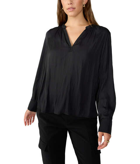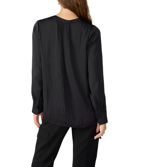 Pair your jeans or shorts with the Sanctuaryâ„¢ Lizzie Sateen Tunic for a statement everyday look. The top has a crinkly fabric that enhances the relaxed silhouette. The pull-on style tunic has a band collar with split V-neckline, long sleeves with button cuffs, and a curved high-low hemline for a classy look.
