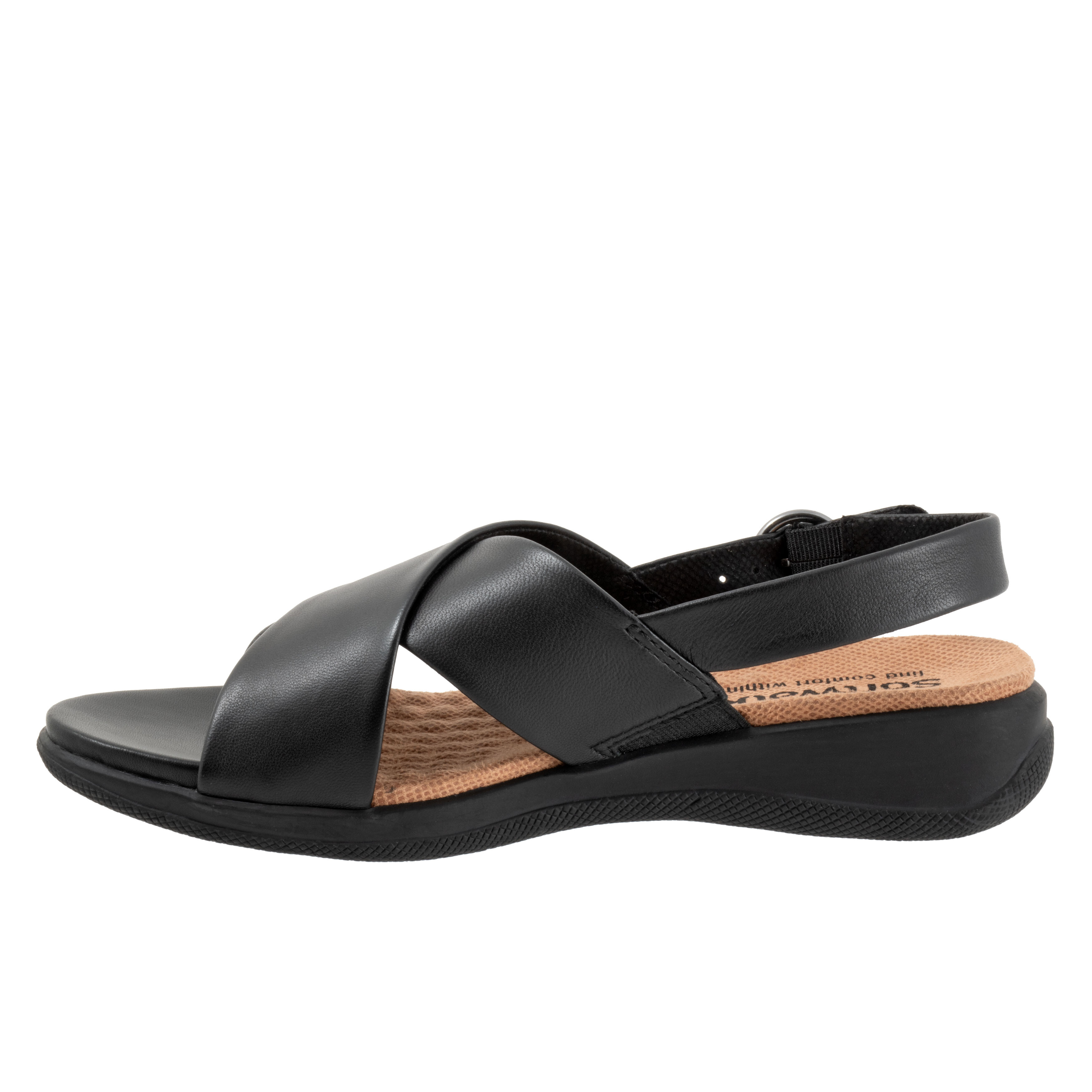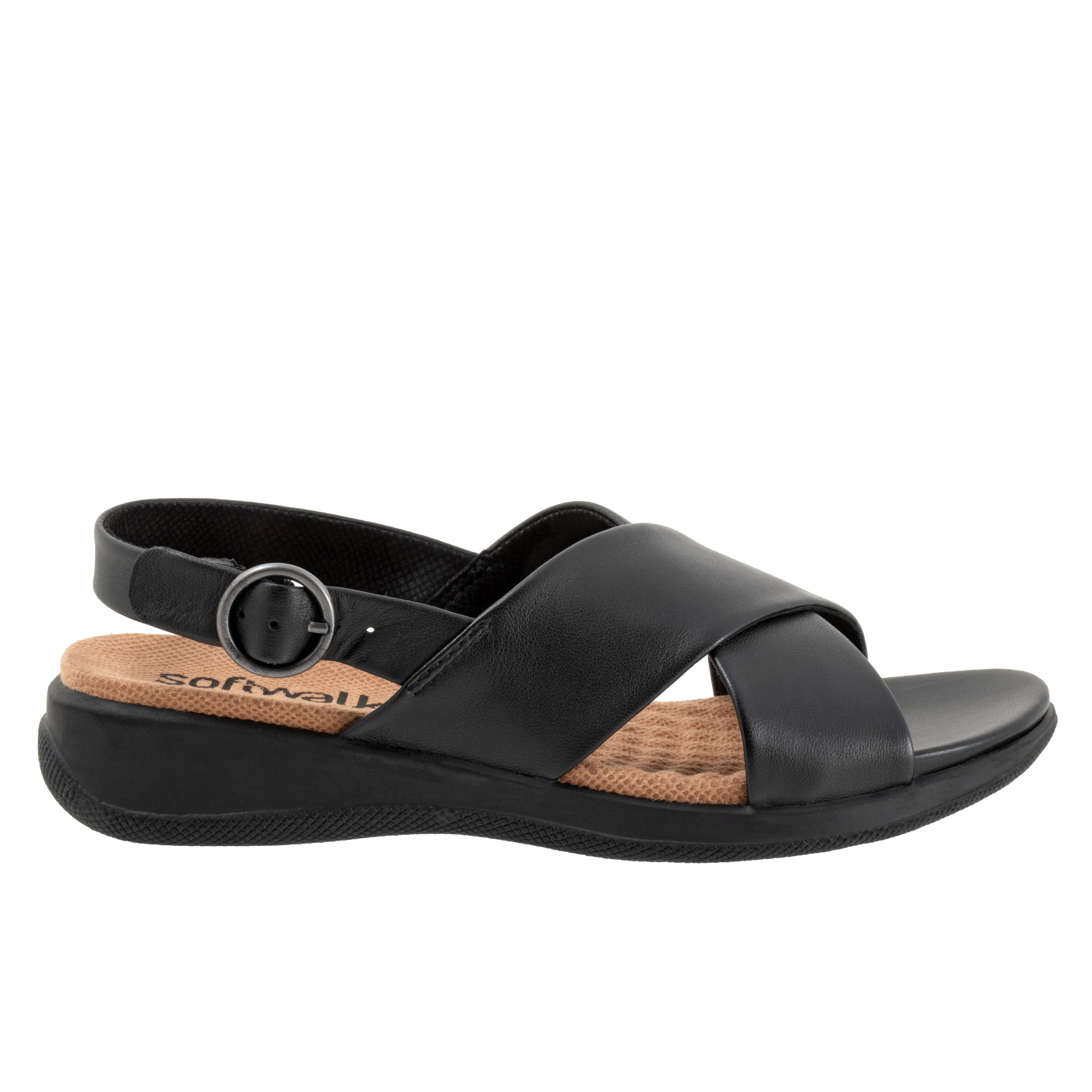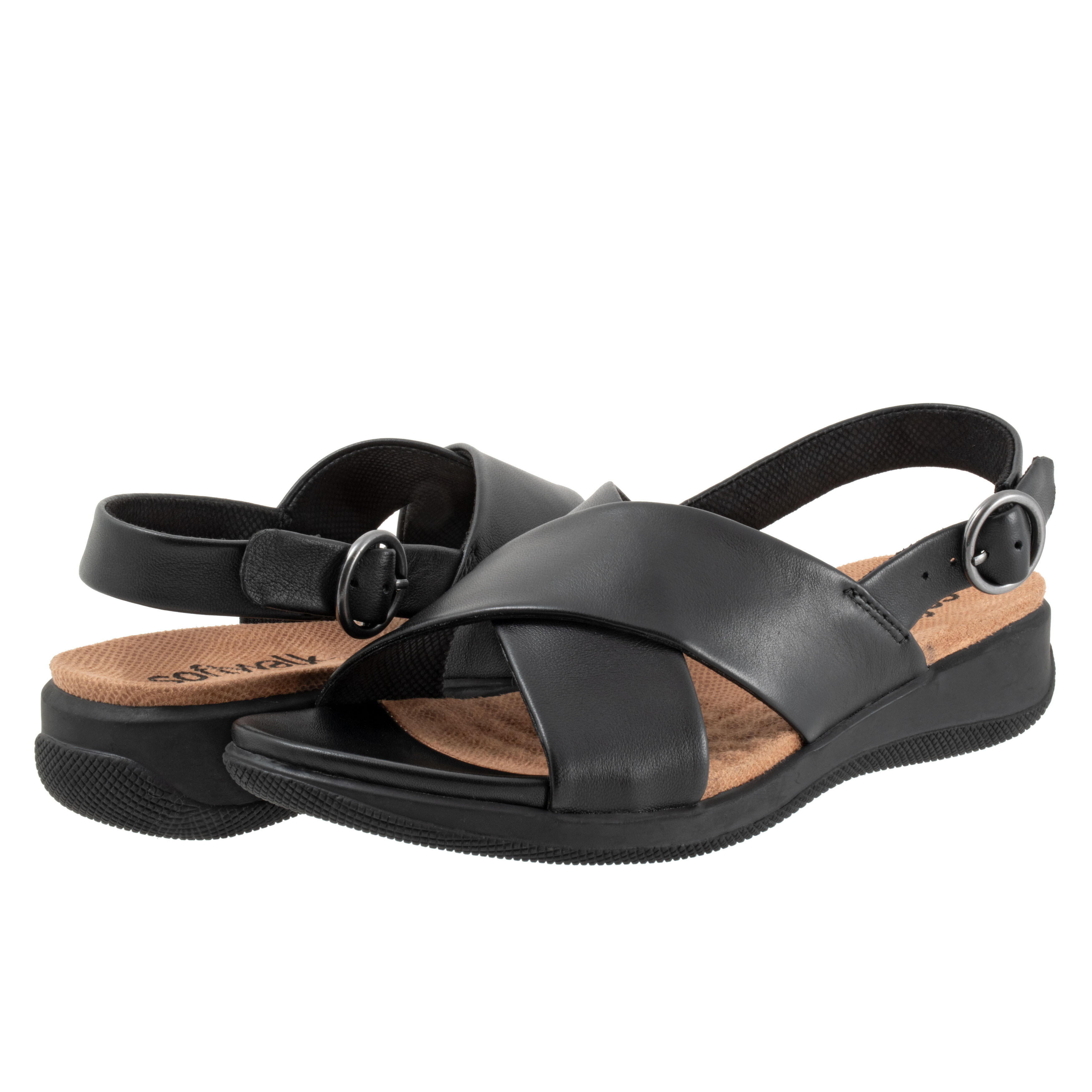 Finesse the fashion scene with your impeccable style wearing SoftWalk® Tillman Sling Flat Sandals. With micro-wedge heels, the footwear features leather upper construction and buckled slingback strap closure.