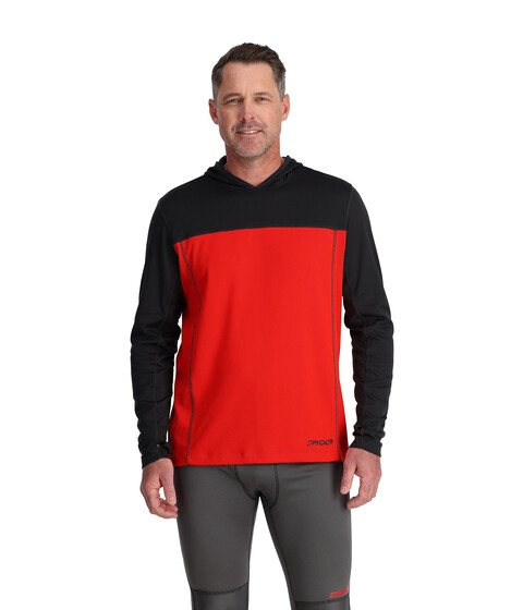 Stay light and warm when stepping outdoors, layering this super-soft and comfy Spyder® Charger Hoodie. This pullover hoodie features round neckline with an attached three-piece hood, long sleeves with thumbhole detail, and brand logo print at the back and near left hem. It has flatlock stitching for optimal comfort during movement.