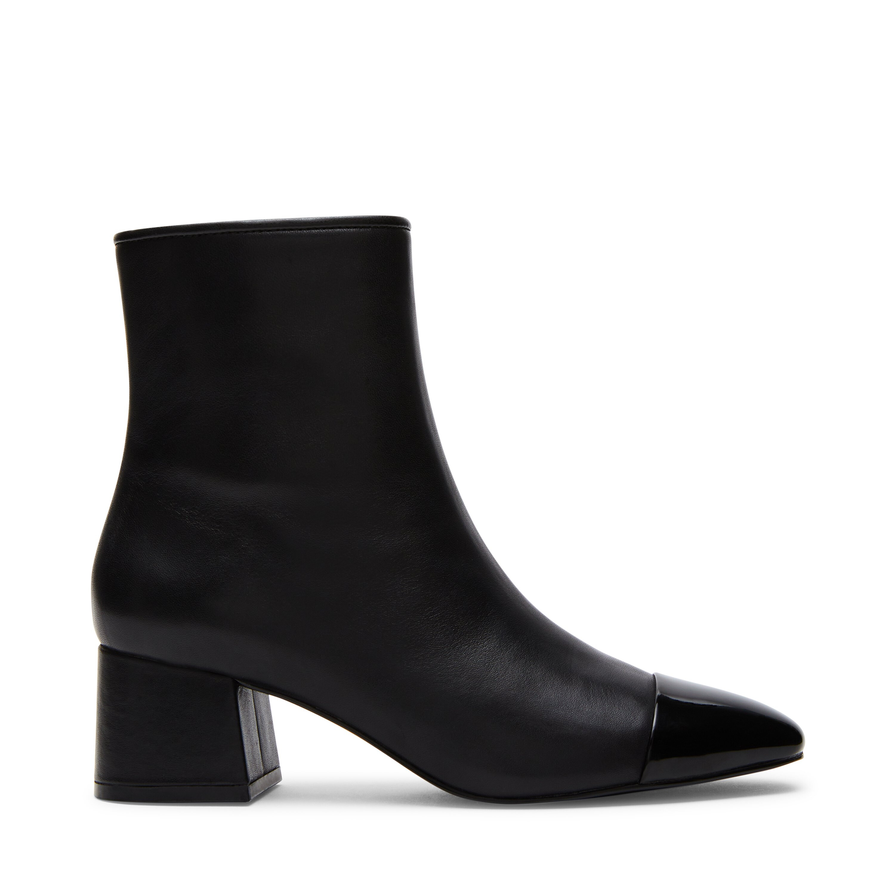 Get ready to set the trend wearing the Steve Madden® Eiffel Boots. Featuring an ankle-length silhouette with a contrasting cap toe and a sculptural block heel, the boots are prized for their minimal and elegant style. Durable and comfortable, the boots are designed with a leather upper, a synthetic rubber lining, and a synthetic insole.