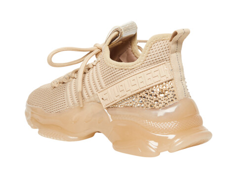 • Make glamour and athlete your edge this season with the Steve Madden® Maxima Sneaker. This studded monochromatic shoe is crafted with a texture-blocked knit upper and sculpted outsole to complete a show-stopping look.