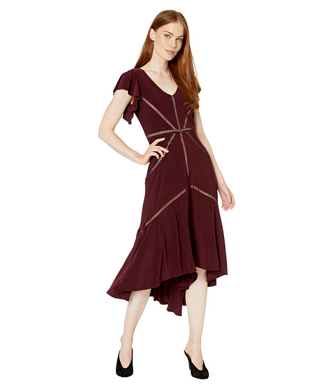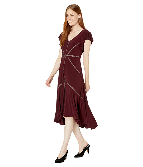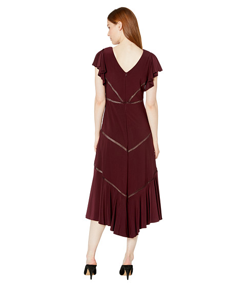 • Your fun and flirty style is sure to be a hit when wearing this Taylorâ„¢ Ruffle Sleeve Solid High-Low Dress with perforated trim throughout.