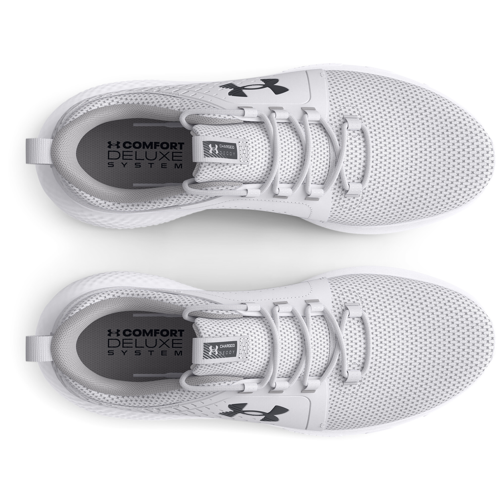 Lightweight and breathable, the Under Armour® Charged Decoy shoes are designed with a Charged Cushioning® midsole that uses compression molded foam to offer superior responsiveness and durability. The leather midfoot panels on the upper provide added lateral stability while the textile lining makes them a comfortable footwear choice. With their lace-up closure, these sports shoes offer you a customized fit. Get ready for any adventures with these durable and comfy shoes.