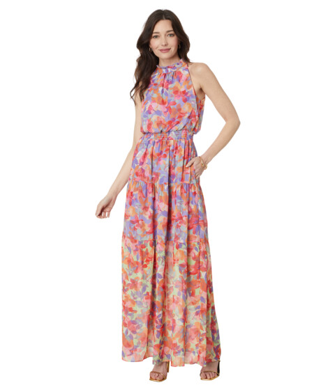 Commence in a blossoming fantasy by wearing the Vince Camuto® PTD Chiffon Maxi Dress. Embrace its ethereal charm with cascading ruffles and a flattering halter neck. Crafted with stretchy, scuba knit fabric, this fully lined dress boasts a vibrant floral print, ensuring you radiate elegance with every step. Zip up and stand out.
