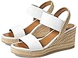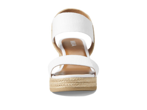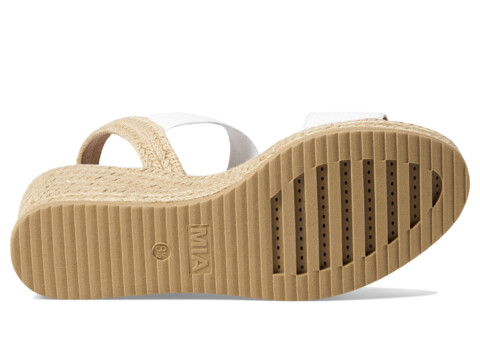 Add a class of difference to your casual style wearing the MIAâ„¢ Brittni heel sandal. Made with canvas upper, the heel features open toe, and slingback strap. A slip-on style, faux leather lining, and padded faux leather insole provides right support. This espadrille sandal features a woven wrapped wedge heel and two elastic bands on the upper.