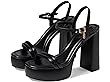 Let your graceful elegance radiate a charismatic aura wearing the MICHAEL Michael Kors® Laci Platform Sandals. Featuring shiny leather upper construction, this block-heeled footwear has synthetic lining and cushioned insole.