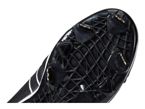 Synthetic outsole with spikes.