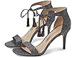 Chic and glamorous, the Pelle Moda® Roz Heels are enough to give you a dazzling look on your evening parties or night outs. Lifted by a high stiletto heel and sculpted with an open round toe, these shoes highlight an ankle strap with tassel ties for a striking appeal. The metallic textile upper lends a pop of sparkle to your outfit while the cushioned PU foam midsole makes your walk more comfortable.