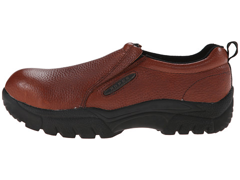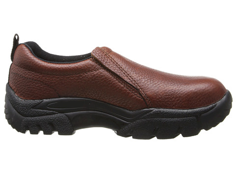 This Roper performance slip-on shoe offers both comfort and protection with its durable leather and steel toe design.