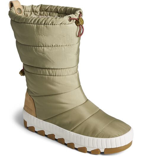Keep yourself protected from outer elements by wearing the Sperry® Torrent boots. The padded boots have a leather and textile upper with breathable textile lining. The top of the boot has a fold-over design with snap closures for a secondary look. They also have a soft, padded textile footbed.